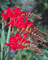 Avec leurs fleurs qui apparaissent telles des flammes sur leurs longues hampes souples, les crocosmias (monbrétias) animent brillamment, en fin d'été, les massifs exposés en plein soleil mais dont la terre la terre reste toujours fraîche. Cette bulbeuse appartient à la même famille que l'iris, car ses racines forment des cormes. Les touffes importantes doivent être divisées en hiver, hors période de gel, pour rester florifères.