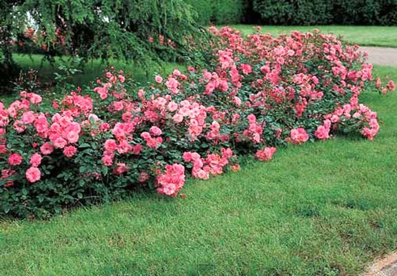 Primé à Bagatelle, à Lyon et à Rome au début des années 90, 'Les Amoureux de Peynet' séduit toujours ! On le remarque à l'abondance de ses fleurs, assez petites (7-8 cm de diamètre) mais bien formées, aux nombreux pétales et surtout à son coloris : un rose carmin vif et lumineux. Ce petit rosier (H.0,60m) à installer au soleil fleurit sans arrêt de juin à octobre. Toujours multiplié, il est facile à trouver (Meilland-Richardier et ses revendeurs). Il estparfait en masif ou en bordure d'un parterre de fleurs bleues, blanches ou jaune pâle.
