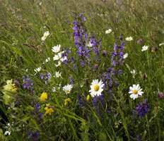 •Appliquez un désherbant sélectif pour gazon afin d'éliminer les mauvaises herbes qui prédominent actuellement, surtout si elles sont ni florifères ni décoratives. Vous devrez ensuite patienter 4 semaines avant de tondre à ras et de semer, dans les emplacements libérés, un mélange de fleurs annuelles, de bisannuelles et de vivaces dont la floraison est répartie sur l'année.
