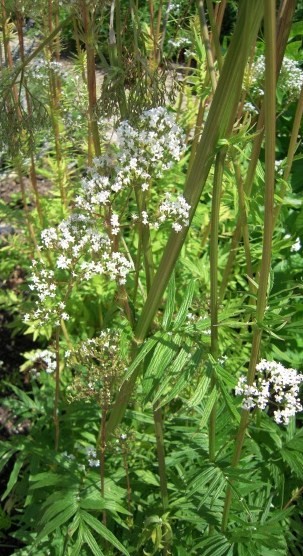... c'est bien sûr la cataire (et nulle autre), Nepeta cataria, une vivace aromatique qui a disparu des bords de nos cours d'eau et de nos haies pour se réfugier dans les collines calcaires de l'arrière-pays, qu'elle égaie, en été, de ses corolles blanches ou rose piqueté de rouge. C'est dire des facultés d'adaptation, sa tolérance à la sécheresse mais aussi au froid. La cataire attire irrésistiblement les chats en agissant, semble-t-il, comme un aphrodisiaque ; encore une histoire de phéromones... Herbe médicinale attestée, il vous sera bien difficile de conserver ses tiges laineuses aux feuilles presque blanches au revers, mais vous aprécierez, comme nous, l'ardeur que déploient ces chers griffus à se vautrer volupteusement dans ces touffes odorantes. Divisez les souches à la fin du mois pour créer une véritable aire de jeu à destination des félins ; d'autres herbes s'en trouveront soulagées !
