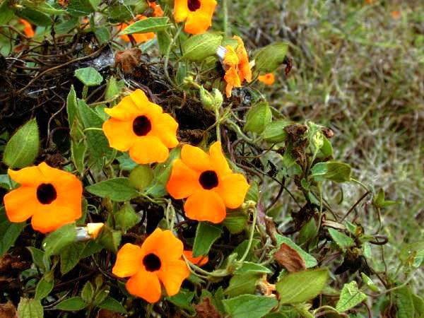 Cette liane, de la famille des Acanthacées, a tout pour plaire. Une floraison hivernale somptueuse, un feuillage persistant, une vigueur sans pareille qui lui permet de recouvrir un support de 5 à 7 m² en deux de culture tout au plus. Les cinq pétales d'un orange lumineux contrastent idéalement avec le coeur prune foncé, d'où son patronyme créole : suzanne aux yeux noirs. Pour les botanistes, il s'agit de Thunbergia alata. D'origine africaine, la plante est frileuse. En climat rigoureux, cultivez-la en pot, dans un substrat un peu lourd et riche en compost. Rabattez les tiges au printemps pour obtenir une floraison à contre-saison un mois après. En pleine terre (tous les sols lui conviennent), vous pouvez même cultiver ce thunbergia en annuelle ; le semis a lieu en mars et la floraison de juin aux premières gelées. Le marcottage vous permettra de multipliez très rapidement la belle suzanne.