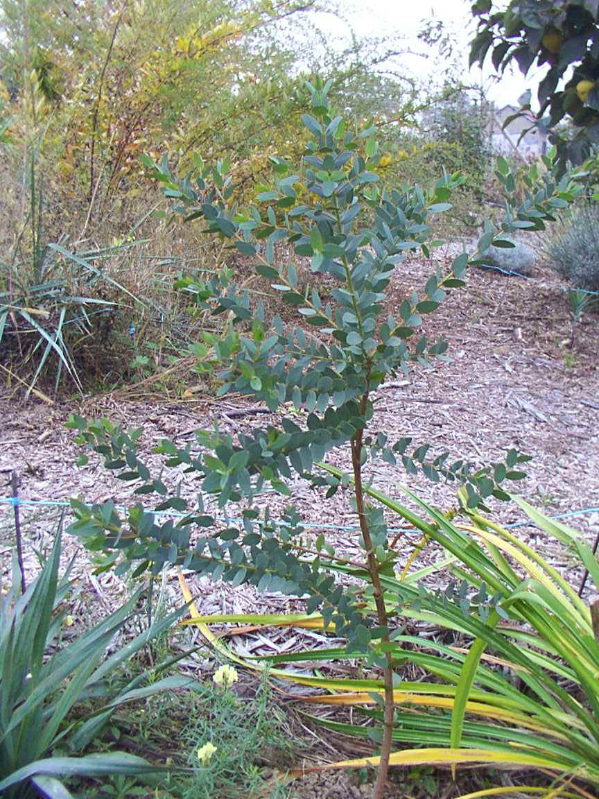 Il s'accomode de sols pauvres, même calcaires et ne dépasse guère 3-4m de haut. Il est surtout remarquable par son port tortueux, son tronc rouge comme certains arbousiers et des vieilles feuilles arrondies, vert sombre. Un excellent arbre parasol pour les petits jardins.