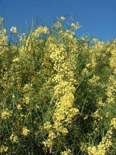 Il est en fleurs depuis septembre et sa multitude de pompons jaune clair, odorants, va durer jusqu'en février. L'acacia iteaphylla n'est pas un inconnu : il fut introduit à la Villa Thuret, à Antibes, en 1868. Réintroduit (c'est un australien) en 1986, il est commercialisé grâce aux services de l'Institut national de la recherche agronomique d'Antibes. Idéal pour les petits jardins, c'est un arbuste compact, très ramifié, aux rameaux flexibles et pleureurs. Sa croissance est rapide et il ne dépasse pas 1,50m de haut. Même en plein soleil, il tolère la sécheresse et, surtout, il ne craint pas le calcaire. Il a encore d'autres atouts : on ne lui connaît pas de sensibilité particulière aux maladies ni aux ravageurs et il s'avère résistant à de légers embruns. Tout pour plaire, en somme, à condition de le cultiver, en peline terre, dans la région de l'oranger (de Menton à Toulon, de  Gruissan à Perpignan), mais en orangerie ailleurs. Conduisez cet arbuste remarquable en forme libre et utilisez-le en massif, en haie vive voire en grande potée d'extérieur.
