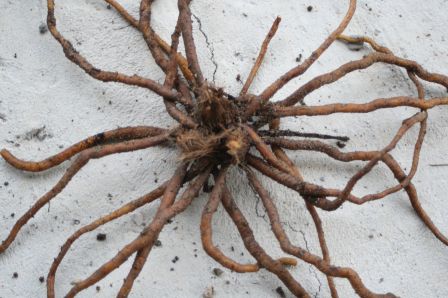 ♥ Les souches sont constituées d'un gros bourgeon entouré de racines tubérisées. Ces souches atteignent 50cm de diamètre. Plantez-les en automne, à 8cm de profondeur, en laissant affleurer le bourgeon.