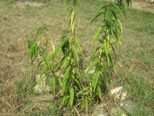 Dans les terres calcaires (ph supérieur à 7,4), les pêchers (mais aussi la vigne et les poiriers) souffrent rapidement d'une carence en fer, indispensable à une bonne végétation, mais qui dans ces terrains ne peut être assimilé. Les symptômes se lisent facilement car les feuilles jaunissent entièrement sauf les nervures. La fructification diminue, l'arbre pousse beaucoup moins et dépérit peu à peu. Pour y remédier, il faut apporter du fer sous forme de chélate, plus facilement assimilable. Vous trouverez dans le commerce différentes spécialités sous le terme générique "d'antichlorose" (Sequestrène®, par exemple). Vous pouvez l'apportez sous forme de pulvérisation du feuillage ou par arrosage au pied de l'arbre. L'effet est aussi spectaculaire que rapide, mais il faudra le renouveler tous les ans. Vous complèterez ces traitements par des apports de terreau de feuilles en automne pour acidifier un peu le sol en surface. Pour éviter d'en arriver là, il est préférable de planter un pêcher greffé sur un porte-greffe résistant au calcaire. Il faut donc s'adresser à un pépiniériste capable de fournir des pêchers greffés sur prunier, amandier ou sur un hybride "pêcher x amandier". dans ce cas il faudra planter jeune et tôt en saison pour assurer une bonne reprise.