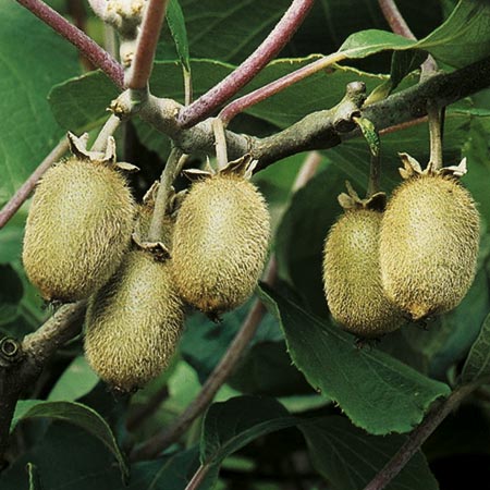 Avec une variété classique, il faut planter un pied à fleurs mâles pour polliniser de 1 à 6 pieds à fleurs femelles. Ici, un seul suffit. Nous connaissions 'Jenny' (autofertile), obtenue en Belgique il y a une dizaine d'années et dont les fruits sont proches, bien que légèrement plus petits, de ceux de 'Hayward' (à polliniser par 'Tomuri').
