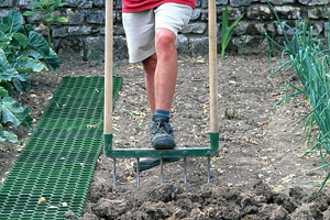 En 1948, André Grelin inventa la Grelinette, une fourche-bêche particulière. Conçue avec quatre dents que l'on enfonce verticalement dans le sol et un double manche qui fait levier, elle permet un ameublissement de la terre sans avoir à la soulever ni à la retourner. Depuis, d'autres outils de conception proche ont vu le jour (Bio-fourche, Aéra-bêche...). Parmi les avantages, citons un travail rapide, sans fatigue, et le respect de la vie biologique du sol. Il est également plus facile de contourner les légumes qu'avec un motoculteur. Les œufs de limaces et les larves sont aisément repérés et éliminés grâce à l'émiettement de la terre.
