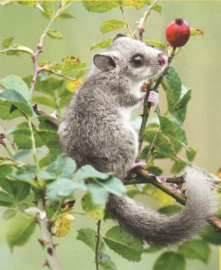 Cet acrobate se sert de sa queue préhensible comme d'une cinquième patte pour s'agripper aux tiges. Il se nourrit de graines, d'insectes et de fruits. En hiver, il ralentit son activité, mais n'hiberne pas complètement.