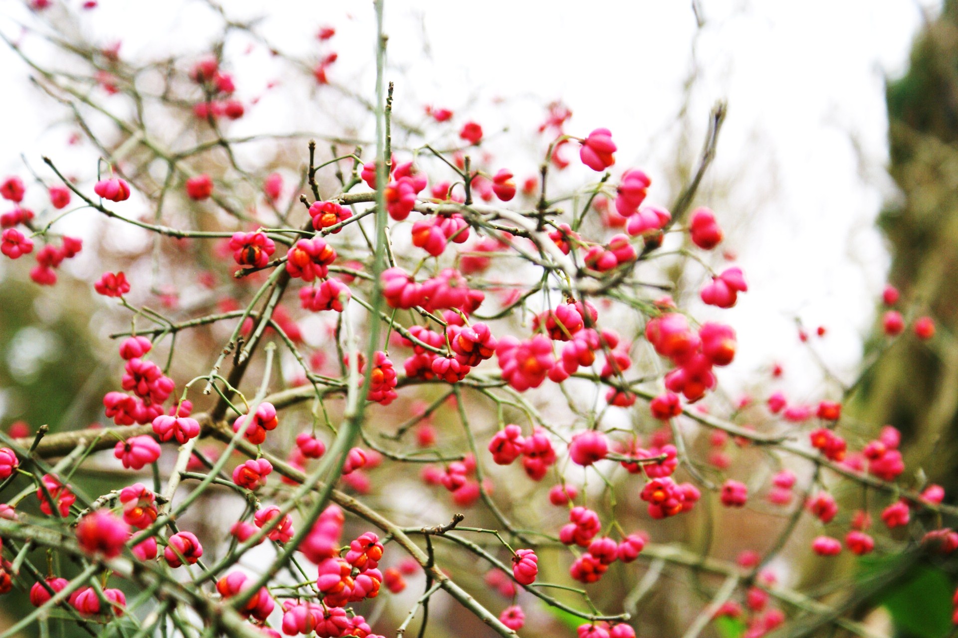 En ce mois ou les couleurs disparaissent une à une du jardin, chaque arbuste coloré devient précieux pour égayer les premières grisailles hivernales. Parmi eux, le fusain ailé (Euonymus alatus), originaire du nord-est de l'Asie, possède une rusticité intéressante en altitude. Peu exigeant quant à la nature du sol (calcaire ou neutre s'il n'est pas trop sec), il convient parfaitement bien à la stabilisation des talus et des petites pentes. Il possède une écorce spectaculaire à ailes liègeuses nettement marquées et se décline en deux tailles : 3m pour le plus haut et 1,50m pour sa variété 'Compactus', dont la silouhette est plus étalée. Très décorative en automne, ses feuilles passent du vert foncé à l'écarlate brillant au début du mois de novembre, et de discret qu'il était, il devient alors un bijou éclatant grâce à ses fruits pourpres et orangés.