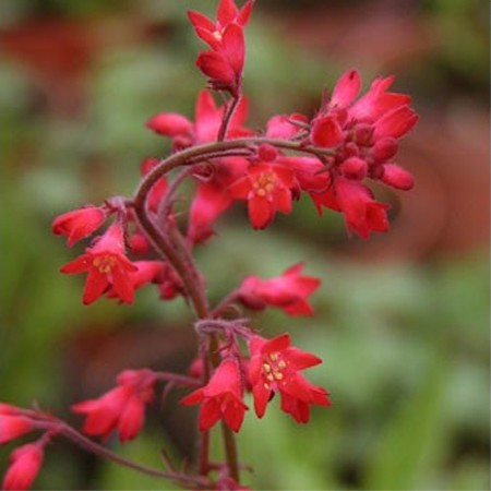Ne terminez pas la saison de plantation des fleurs vivaces sans installer une petite heuchère. De nombreuses variétés gardent leurs jolies rosettes de feuilles arrondies et crénelées durant l'hiver, d'où la possibilité de trouver les plants tardivement. Parmi les nombreux hybrides, les cultivars à fleurs rouges de Heuchera x brizoïdes (H. de la hampe : 50cm) ou Heuchera sanguinea (H.40cm) conviennent pour éclairer une rocaille. Leur emplacement préféré est la mi-ombre.
