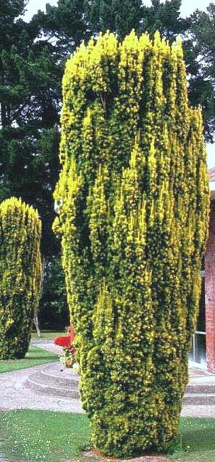Les formes flammes. Leurs racines plongeant à la vertical, vous n'aurez pas de souci à vous faire pour la survie de vos dallages. De forme étroite et élancée, il en existe pour tout sol et tout climat. En sol frais, installez un Chamæcyparis lawsoniana 'Columnaris' ou 'Blue Ribbon'. En climat chaud et sol bien drainé, le cyprès Cupressus sempervirens 'Sricta' s'élève en colonne fine et régulière. Il se décline en feuillage vert, doré ('Aurea') ou bleuté ('Glauca'). Le genévrier Juniperus virginiana 'Skyrocket' forme une flèche à ramules fines et glauques. Les terrains très pauvres et la sécheresse ne lui font pas peur. Les ifs Taxus baccata 'Fastigiata', 'Standishii', 'Aurea' et 'Robusta' constituent d'élégantes colonnes étroites dorées et vertes. Rustiques même sous les climats les plus rudes, ils supportent le calcaire ; de plus, ils poussent lentement : un atout pour les petits jardins.