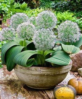 C'est le moment de planter un ail ornemental pour le voir fleurir l'été prochain. Quelques bulbes d'ail du Turkestan 'Ivory Queen' composeront une très belle potée de petite taille (H. environ 30cm), particulièrement au moment de l'épanouissement de ses inflorescences en boules de fleurs étoilées en juin (diamètre 10cm). Après la floraison, la plante reconstituera ses réserves. Il est inutile d'arracher les bulbes en fin de saison, la potée refleurira l'an prochain.