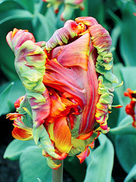 Ajoutez le parfum à la floraison des bulbes de printemps avec les belles tulipes perroquet (voir ce mot au lexique du jardin) 'Blumex' (flammées rouge, jaune et vert) et et les narcisses doubles 'Bridal Crown' (blanc crème à cœur orangé). Plantez dès maintenant une dizaine de bulbes assez serrés pour obtenir une généreuse potée parfumée qui fleurira en avril-mai.