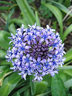 Les scilles sont des plantes bulbeuses vivaces qui forment rapidement des touffes larges et denses, à cycle de végétation hivernal. Leur feuillage commence à se développer en septembre et disparaît en juin, car les bulbes se reposent en été, comme nous. Elles sont originaires du bassin méditerranéen et résistent jusqu'à -10°C, température en desous de laquelle le feuillage disparaît et la floraison s'absente pour l'année. Même si cette température est rarement atteinte en bord de mer, il est préférable de planter en février-mars à partir de plante élévée en conteneur que vous trouverez chez les pépiniéristes spécialisés. Dénommée botaniquement Scilla peruviana, l'histoire veut qu'elle ait été débarquée par un bateau baptisé "Le Pérou". Ce qui n'en fait pas une américaine ! Côté coloris, elles se déclinent couramment en bleu-violet, mais parfois en blanc ou en bleu-clair. Plantez-les en situation abritée, au soleil ou sous un couvert d'arbres à feuilles caduques, dans une terre bien drainée argileuse ou sableuse. Une fois installées, elles ne demandent aucun soin particulier.