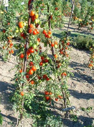 Cette année, vos voisins n'en croiront pas leurs yeux ! Voilà une occasion de cultiver une variété de tomate aussi spectaculaire par sa taille (elle peut dépasser 3m de haut !) que par le nombre de produits en une saison : une centaine. Cette tomate nommée 'De Berao' porte des fruits moyens (type Roma) de 100g chacun, soit environ 10kg par pied... Ils apparaissent en grappes de 6 ou 7, et mûrissent progressivement, à la fois sur la grappe et sur le plant, de bas en haut. Avec un bon ensoleillement, les premiers arrivent à maturité à la mi-juillet et les derniers en automne tant que la chaleur le permet. Sans compter parmi les meilleures, 'De Berao' est une tomate ferme, de bonne saveur. On peut aussi bien la manger fraîche que cuite (à la provençale, elle est délicieuse) ou la mettre en conserve.