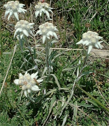 Tout aussi frugale, la plus célèbre vivace, symbole de nos montagnes, l'edelweiss (Leontopodium alpinum)s'épanouit de juillet à septembre dans les fissures de roches et les éboulis calcaires, entre 1500 et 3000m. Il appréciera une rocaille exposée au soleil ou à l'ombre, mais attention, il perd son aspect argenté si le sol est trop riche. En basse altitude, sa floraison est avancée d'un mois au moins...