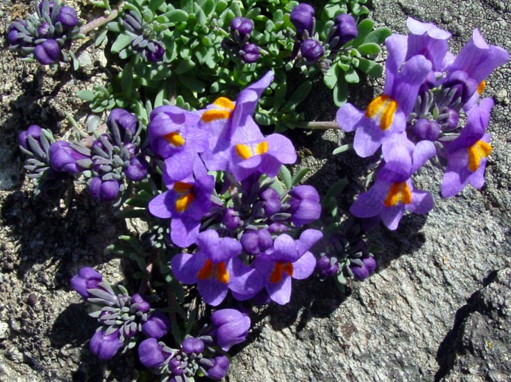 Cette petite scrofulariacée rampante (Linaria alpina) est typique des éboulis entre 1200m et 3400m. Au jardin elle appéciera une rocaille ensoleillée et impérativement calcaire. Elle ne plante ses racines que dans une terre peu abondante et fleurit de juin à septembre. Ses tiges souplesrecouvrent vite les rochers. Réputée au Moyen-Âge pour protéger les enfants des maléfices de sorcière, cette petite "gueule de lion" se ressème si l'emplacement lui plaît...