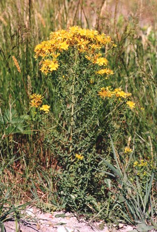 Souveraine contre les brûlures et les coupures, Hypericum perforatum doit son nom à ses feuilles qui, en transparence, paraissent criblées de mille petits trous ("pertuis" en vieux français) ; en fait, elles contiennent de minuscules glandes remplies d'une huile essentielle précieuse, également contenue dans les fleurs. Mais le millepertuis a d'autres qualités. Par exemple, ses sommités fleuries, mises à macérer 2 semaines dans une bouteille d'huile d'olive exposée au soleil donnent, après filtrage, un baume orangé souverain contre les coups de soleil, les plaies et les brûlures. Cette reine de l'été se ressème spontanément jusqu'à 1 600m. Quelques graines récoltées prochainement vous permettront de le semer dès la fin de l'été.