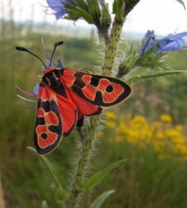 Parmi eux, la visite des papillons sauvages. Ces visiteurs du jardin ne seront pas les mêmes suivant le versant où se situe notre jardin. L'adret ensoleillé voit voleter la svelte zygène, tandis que l'ubac, plus ombragé, accueille la frugale et très belle écaille martre dont on admirera les ailes superbement étalées en signe avertisseur pour d'éventuels prédateurs, car madame se repose en nos jardins de ses virées nocturnes. Plaisir des yeux, rêverie d'été...