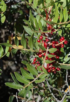 Le pistachier lentisque (Pistacia lentiscus), originaire des garrigues, pousse jusqu'à 800 m d'altitude.