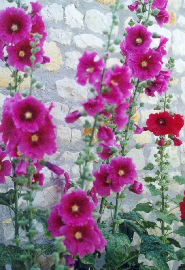 Les roses trémières sont maintenant fleuries, mais il est aussi temps de les semer, soit en poquets de 2-3 graines, en godets, en ligne ou à la volée en pleine terre. Veillez surtout à les enterrer sufisamment, car les graines sont grosses et ne germent bien que dans ces conditions. Vous les repiquerez en septembre à leur emplacement définitif. Si vous recherchez des variétés à fleurs simples d'une couleur précise, récoltez-les vous-même, mais vous ne garderez pas la couleur exacte du pied-mère. Dans le commerce, vous les trouverez en mélange ou bien Althæa nigra à fleurs noires et Althæa ficifolia à fleurs jaune pâle,
