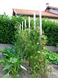 Le tuteurage des tomates est nécessaire pour obtenir une bonne production. Utilisez pour cela des piquets (désinfectés dans une solution diluée d'eau de Javel ou d'ammonium quaternaire) que vous planterez du côté des vents dominants pour éviter le frottement de la tige sur le tuteur. Pour attacher les tomates, coupez les feuilles de phormium (lin de Nouvelle-Zélande) que vous séparerez en lanières d'un centimètre de large sur 40cm de long. Très souples, ces liens ne blesseront pas les tiges et résisteront jusqu'en octobre. Pour faire grossir les tomates, ébourgeonnez les plantes en cassant par le côté les bourgeons feuillés naissant à la base des tiges et coupez la tête au-dessus du 4e ou 5e bouquet floral. Dégagez aussi les feuilles basales pour accélérer le mûrissement des fruits, et paillez le sol avec du compost, des aiguilles de pin ou de la paille pour limiter les arrosages, les déherbages et le tassement. Un traitement à la bouillie bordelaise complètera votre labeur pour assurer une bonne protection contre les blessures causées par la taille.