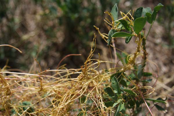 Peut-être avez-vous déjà vu des plantes (coleus, impatiens, pélargoniums...) envahies par une plante dépourvue de feuilles mais pas de graines ! Réduite à de longs filaments dépas-sant 40-50cm, il s'agit de la cuscute. Inutile, même si son originalité vous séduit de la laisser prospérer. Dans un premier temps, enlevez tous les filaments enlaçant les plantes pour couper court à toute dissémination par graines ; vos plantes auront ainsi un sursis pour l'été. En fin de saison, il vous faudra recourir aux grands moyens en détruisant sans remords toutes les plantes porteuses. Faites un feu de joie ou utilisez l'incinérateur de jardin pour y jeter les plantes et le substrat des pots et de la tablette. Vous ne laisserez ainsi aucune chance de survie à la moindre graine. La cuscute a bien battu en retraite, mais elle peut encore se manifester. Essayez aussi de détecter l'origine de sa provenance et parlez-en à votre marchand grainier.