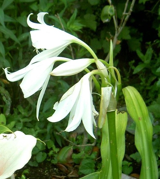 Certaines plantes sont d'une culture si facile et donnent des résultats si étonnants que l'on aurait tort de ne pas les essayer. Crinum moorei en fait partie. Cette bulbeuse originaite du Natal (Afrique du Sud) forme un bulbe surmonté de feuilles pouvant atteindre 1m de hauteur. Son aspect plus ou moins en forme de palmier en fait une plante remarquable même en dehors de sa floraison. sa culture en pot est simple si l'on prend soin de lui offrir l'espace et la nourriture nécessaires. Cette plante puissante et vigoureuse doit être cultivée dans un grand pot. Ce dernier sera choisi en fonction de l'âge du bulbe, mais un diamètre de 30cm sur une hauteur de 20 à 40 cm n'est pas trop. Procurez-lui un mélange riche, composé de 1/2 de bonne terre de jardin, 1/4 de terreau et 1/4 de terre de bruyère. Ajoutez une dose de compost ou de fumier déshydraté. À la plantation, enterrez le bulbe de moitié. Arrosez bien au printemps et apportez de l'engrais liquide pendant la formation de la hampe florale. Ses gracieuses fleurs blanc rosé au doux parfum s'épanouissent en début d'été.