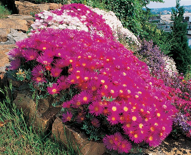 Les griffes de sorcières ou ficoïdes à gros ses feuilles, plantées généralement pour maintenir les talus abrupts, s'avèrent parfois récalcitrantes à former leurs boutons floraux. ces plantes habituées à la dure n'aiment pas les sols trop riches et ne fleurissent que si elles sont dans du sable pur, en plein soleil, sans arrosages ; elles vivent de l'air du temps et sont capables de se passer d'eau pendant plusieurs mois.