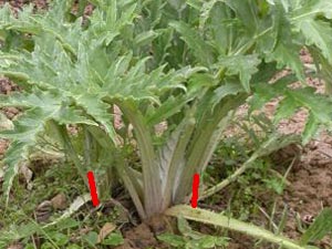 Les artichauts qui ont été préservés du froid sont prêts à fournir les œilletons nécessaires au renouvel-lements des plantations. Pour assurez une bonne reprise, choisissez des pousses dont les feuilles juvéniles sont bien visibles : elles ne sont presque pas découpées. Ne les couper pas car "l'habillage" leur est plutôt néfaste. Plantez-les ensuite par paire, à 1m en tous sens, dans unetrre bien drainée préalablement enrichie copieusement avec du fumier (4kg/m²) ou en engrais organique du commerce (2kg/m²) et un engrais complet riche en potasse (20g/m²).