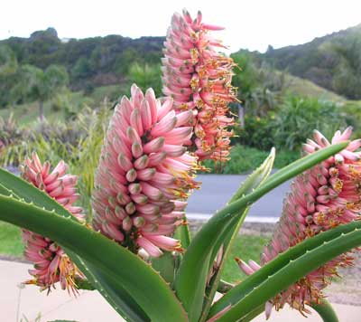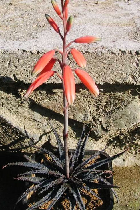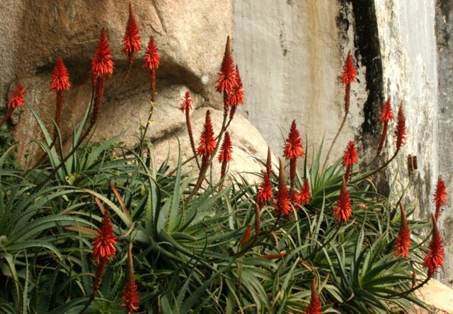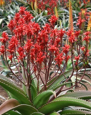 • A. arborescens, plus modeste mais aussi plus solide, possède les plus belles fleurs rouge du genre.