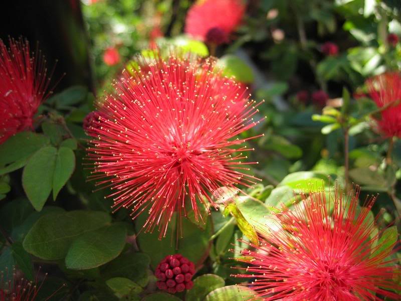 Les calliandras, dits "pompons de marin" sont des arbustes remarquables par leurs fleurs aux longues étamines en aigrettes se détachant sur un élégant feuillage découpé ; très accomodants quant à la nature du sol, ils poussent vite.