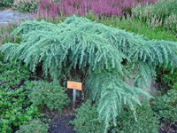 40 c'est en centimètres, la hauteur maximum du cèdre nain de l'Himalaya (Cedrus deodara 'Feeling Blue'), une variété rampante très décorative grâce à son feuillage original gris bleuté. Il s'accomode de tous les sols, même calcaires. Plantez-le de préférence en partie haute de la rocaille, pour que ses branches s'étalent.