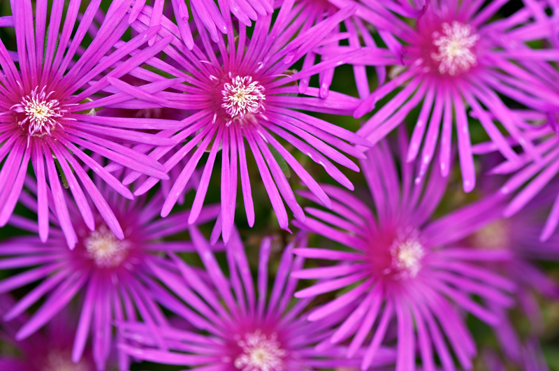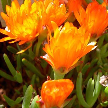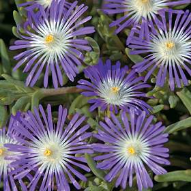 Les ficoïdes (Delosperma, autrefois appelé Mesembryanthemum), originaires des déserts d'Afrique du Sud, ont tout naturellement colonisé les rocailles et les murets du bassin méditerranéen, mais ne rechignent pas à fleurir nos jardins plus septentrionaux. Elles s'adaptent même à la culture en pot. Leur seule exigence : le soleil ! Il leur est indispensable : les fleurs colorées (comme des marguerites roses ou jaunes presque "fluo" avec un cœur d'étamines jaune d'or) s'ouvrent avec les premiers rayons et, au moment le plus chaud de la journée, dégagent un léger parfum de vanille. Ces plantes rampantes recouvriront un muret et sauront retomber généreusement sur les bords d'un panier anglais ou d'une jolie vasque.