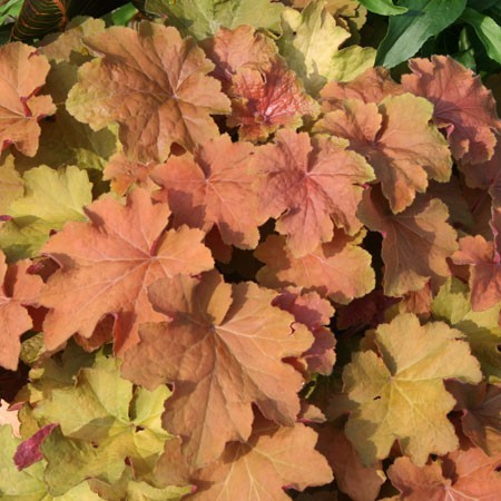 Les heuchères vivaces, dont le feuillage persistant décline d'étonnantes nuances, caramel, pourpre, argent ou bronze, bravent vaillamment le froid qui intensifie les couleurs, particulièrement celles des nouvelles variétés. Elles animeront avec bonheur les jardinières hivernales en compagnie de cyclamens ou de graminées.