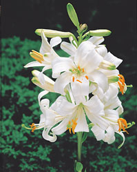 Qui n'a pas un petit faible pour le lis de la Madone ? En juin, sa magnifique floraison d'un blanc pur est délicatement parfumée. La culture en pot, assez facile, permet d'agrémenter une terrasse ou un balcon. Pour obtenir un effet convaincant, installez plusieurs bulbes dans le même pot : prévoyez un contenant de 30 cm de diamètre pour 3 bulbes. Ces derniers demandent un mélange riche composé de 1/2 terreau, 1/4 sable et 1/4 de terre de jardin. Ajoutez deux poignées de compost pour enrichir le mélange. Enfoncez les bulbes de façon que la pointe soit à ras du sol. Arrosez bien la potée et installez-la dans un lieu aéré mais protégé des grands froids. Arrosez une fois par semaine ou tous les quinze jours si le temps est humide. Les feuilles apparaîtront pendant l'automne.