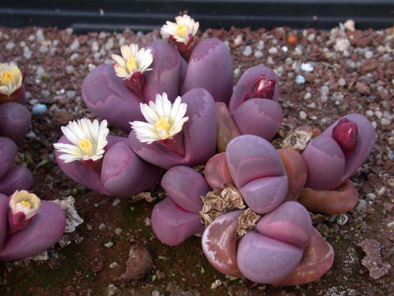 Vivant dans les déserts d'Afrique du Sud, le lithops ou plante-caillou est relativement facile à cultiver, à condition toutefois de respecter quelques règles. Il exige beaucoup de soleil : vous pouvez le placer dehors pendant l'été, en situation bien exposée, en l'arrosant légèrement, tous les quinze jours environ.