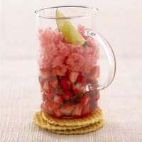 Laissez mariner 30 mn au frais avant de servir dans des verres avec le granité.