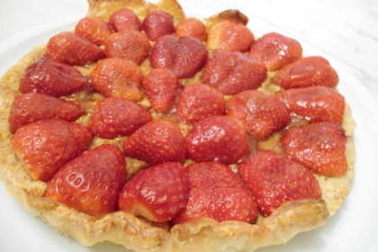 Répartissez les fraises par dessus et nappez de gelée de groseilles.