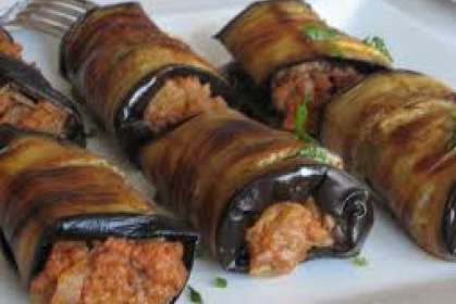 Roulez les lamelles d'aubergines farcies en forme de cigare. Répétez l'opération jusqu'à épuisement des ingrédients.