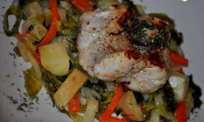 Lotte aux petits légumes et bouillon de paysanne