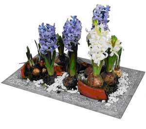 À l'achat des bulbes déjà forcés, nous préférons le "forçage maison", plus productif et plus économique. Le forçage correspond à une mise en végétation accélérée où les bulbes subissent un petit hiver (froid et obscurité) avant de connaître un petit printemps artificiel (chaleur et lumière). Plaçons vos bulbes trois semaines dans le bac du réfrigérateur avant de les enterrer, bien serrés les uns contre les autres, dans des pots remplis de terreau et de sable que vous arroserez légèrement. Mettez ces pots dix jours minimum dans une totale obscurité, dans une pièce tempérée, en maintenant la terre humide. Puis vous les sortirez en pleine lumière pour que les premières fleurs apparaisent. Leur durée de vie est d'environ huit jours. Vous pouvez la prolonger en mettant les fleurs la nuit dans une pièce non chauffée. Pour obtenir ce mini-jardin intérieur à l'avant-goût de printemps, tout au long d'un hiver qui tend à se prolonger en montagne, il vous suffit de remplacer les bulbes sortant du réfrigérateur par de nouveaux bulbes afin que la production soit continue.