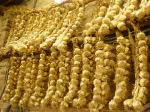 Si l'on connaît bien l'ail du Tarn ou de la Drôme, on connaît moins bien celui du Nord. Il est pourtant une région qui le cultive depuis fort longtemps, c'est celle d'Arleux entre Douai et Cambrai. Cet ail possède la particularité d'être fumé, ce qui lui confère une meilleure conservation (indispensable dans cette région) et une couleur rousse très décorative. Mais avant d'être placé dans les fumoirs, l'ail nécessite un travail manuel important pour la confection de liens tressés de 20, 45, voire 90 têtes. Les tresses sont ensuite supendues dans un fumoir, où l'on entretient des feux de tourbes des marais, de sciure de bois et de paille. Au bout d'une dizaine de jours, elles prennent une belle couleur rousse et un petit arôme de fumée si paticulier. Une fois fumées, les tresses se conserveront un an si elles sont stockées dans un endroit sec.