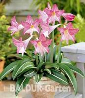 Bien nommé et vraiment décoratif, l'hippeastrum 'Silouhette' assure le décor tout au long de l'année. Il passe la belle saison au balcon (soleil ou mi-ombre) pour la conclure en apothéose, vers le mois de septembre, avec ses somptueuses fleurs roses. Il regagne la maison ou la véranda durant l'hiver (hors-gel) où son feuillage original, strié de blanc, continuera d'épater la galerie.
