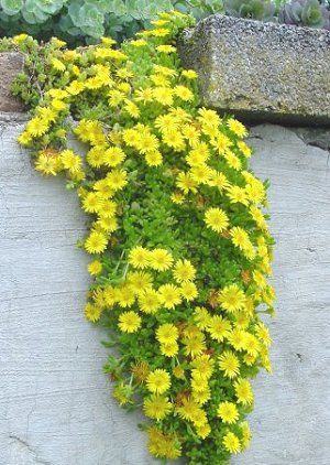 Les ficoïdes (Delosperma, autrefois appelé Mesembryanthemum), originaires des déserts d'Afrique du Sud, ont tout naturellement colonisé les rocailles et les murets du bassin méditerranéen, mais ne rechignent pas à fleurir nos jardins plus septentrionaux. Elles s'adaptent même à la culture en pot. Leur seule exigence : le soleil ! Il leur est indispensable : les fleurs colorées (comme des marguerites roses ou jaunes presque "fluo" avec un cœur d'étamines jaune d'or) s'ouvrent avec les premiers rayons et, au moment le plus chaud de la journée, dégagent un léger parfum de vanille. Ces plantes rampantes recouvriront un muret et sauront retomber généreusement sur les bords d'un panier anglais ou d'une jolie vasque.