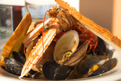 Ajoutez alors les petites anguilles coupées et le morceau de congre, salez et poivrez. Faites cuire à gros bouillons 5 à 6 mn. Ajoutez alors les petites raies et les filets de sole, puis poursuivez la cuisson encore 5 à 6 mn.