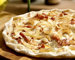 Recouvrez d'oignons émincés, de lardons, et assaisonnez.