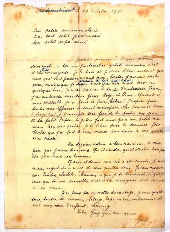 Lettre originale de Guy Môquet